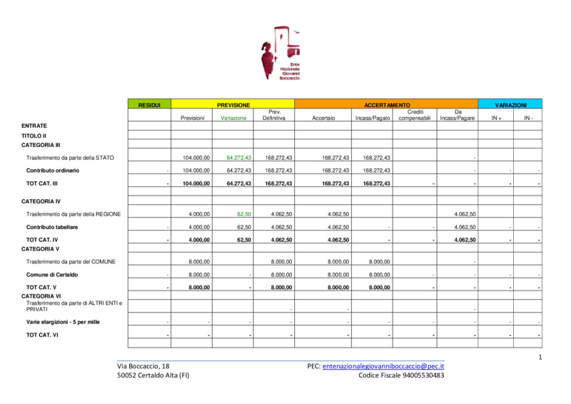 Classificazione dell'archivio aggregato denominato "Tomba del Boccaccio"