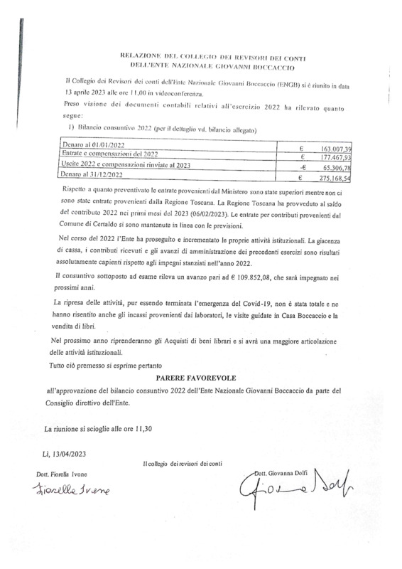 Il documento contiene: bilancio consuntivo 2022, attività svolta, verbale di approvazione del Consiglio Direttivo, relazione dei revisori dei conti.