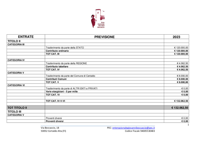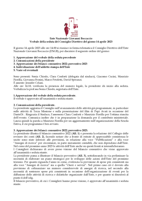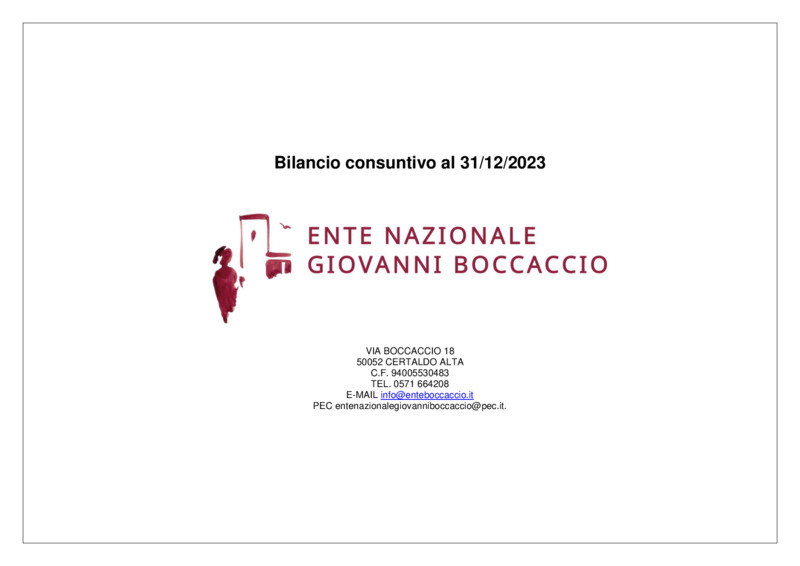 Il documento contiene: bilancio consuntivo 2023, prospetto entrate e uscite in base all'attività culturale svolta nell'anno, attività svolta, verbale di approvazione del Consiglio …