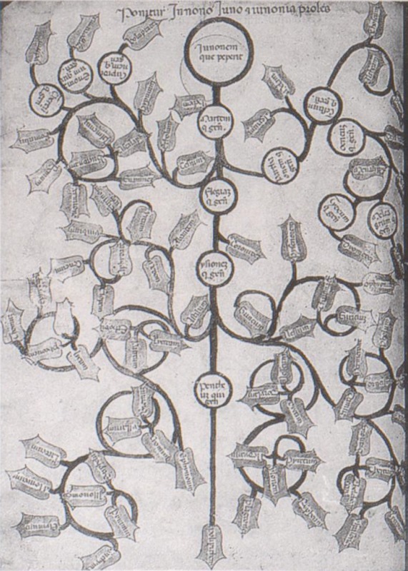 Firenze, Biblioteca Riccardiana, Ricc. 870, f. 38v. Albero genealogico di Giunone.