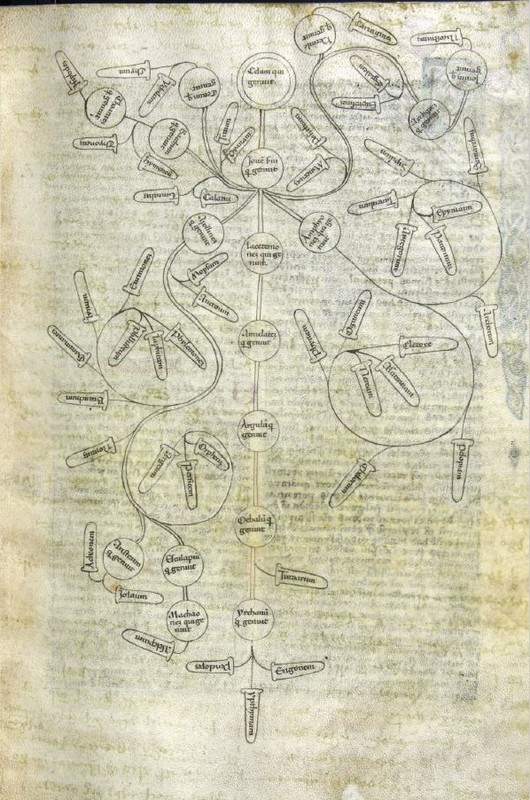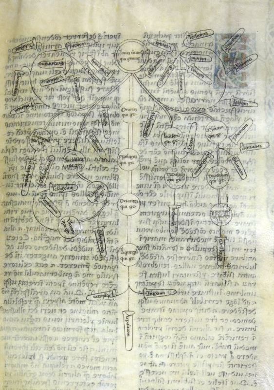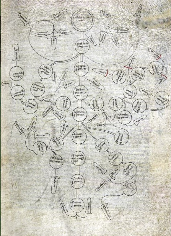 València, Universitat de València. Biblioteca Històrica, BH Ms. 291, f. 40v. Albero genealogico di Celo e Titano.