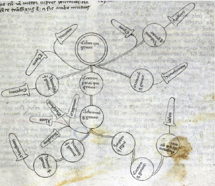València, Universitat de València. Biblioteca Històrica, BH Ms. 291, f. 13v. Albero genealogico di Demogorgone.