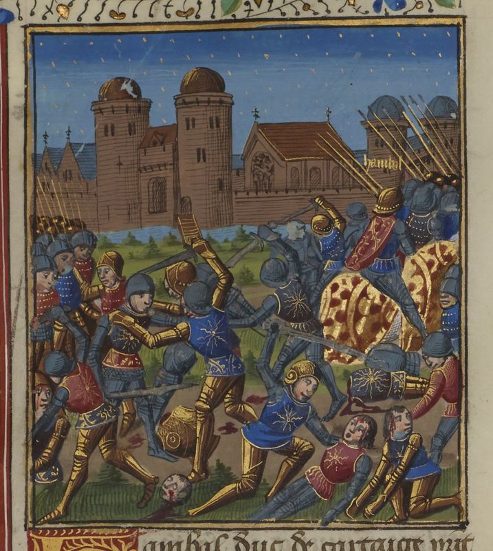 Parigi, Bibliothèque Nationale de France, Fr. 234, f. 78v. Mitridate del Ponto assediato all'interno delle mura (?).
