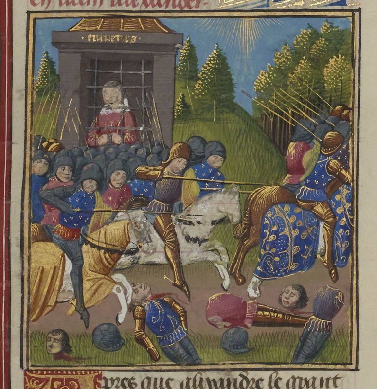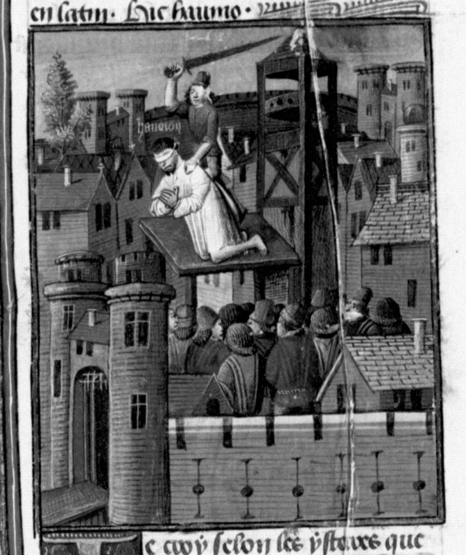 Parigi, Bibliothèque Nationale de France, Fr. 233, f. 104v. Il generale Annone viene giustiziato dinanzi alla folla.