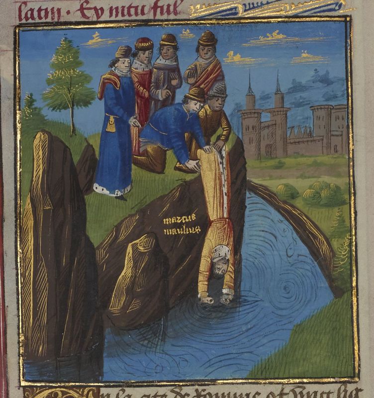 Miniatore francese (1450-1475), Marco Manlio Capitolino viene gettato dalla rupe Tarpea