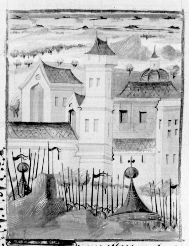 Parigi, Bibliothèque Nationale de France, Fr. 232, f. 256r. Una città sotto assedio.