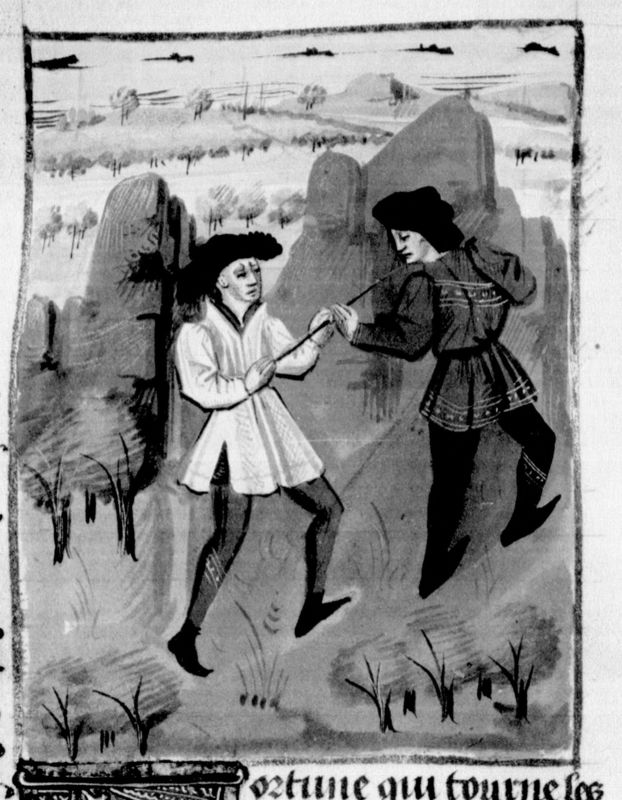 Miniatore francese (1425-1450), Due guerrieri si sfidano a duello