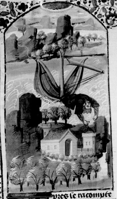 Parigi, Bibliothèque Nationale de France, Fr. 232, f. 155v. La nave di Seleuco è distrutta in un naufragio.