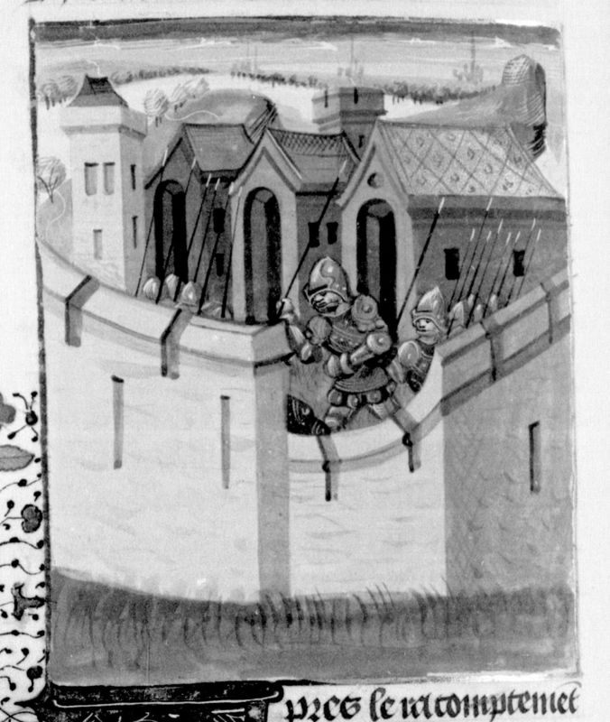Parigi, Bibliothèque Nationale de France, Fr. 232, f. 173v. Un esercito invade una città.
