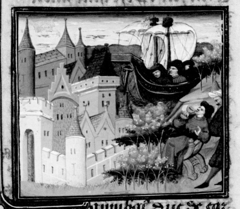 Parigi, Bibliothèque Nationale de France, Fr. 236, f. 39v. Demetrio giunge a Tiro con una nave e viene decapitato.