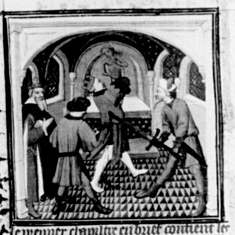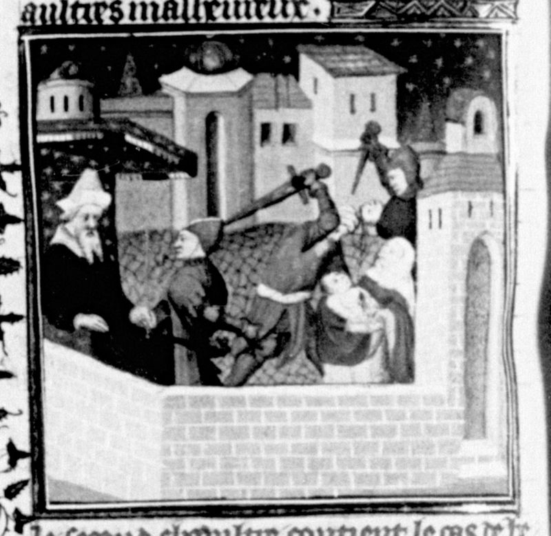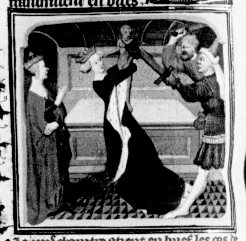 Parigi, Bibliothèque Nationale de France, Fr. 226, f. 187v. Erode ordina la strage degli Innocenti.
