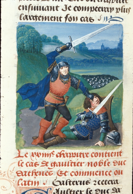 Master of the White Inscriptions e bottega (1480 c.), La morte di Gualtieri V di Brienne