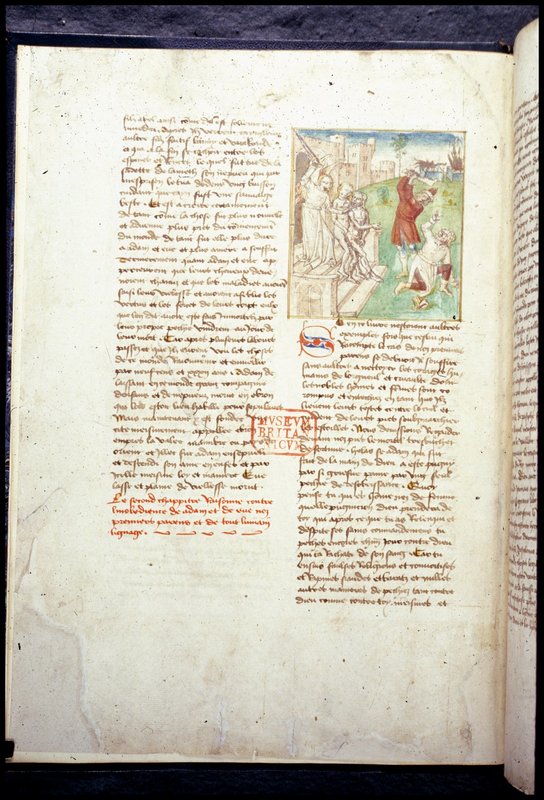 Miniatore francese (1450-1475), Laio ordina la morte di Edipo; Edipo sposa Giocasta e regna su Tebe; scontro tra Eteocle e Polinice