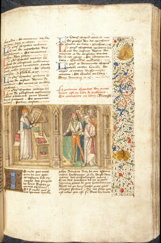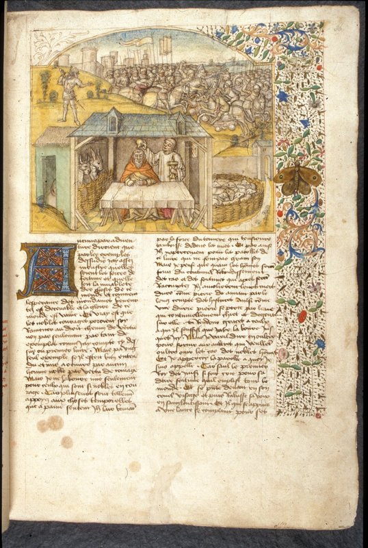 Miniatore francese (1450-1475), L'autore discute con la Fortuna; lo scontro tra due eserciti