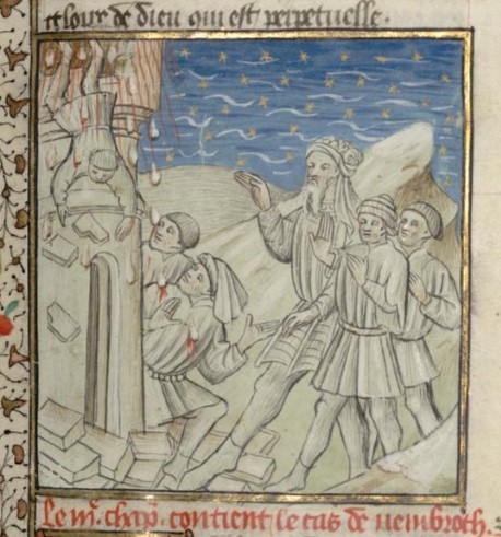 Miniatore francese (1425-1450), Nembrot osserva il crollo della Torre di Babele