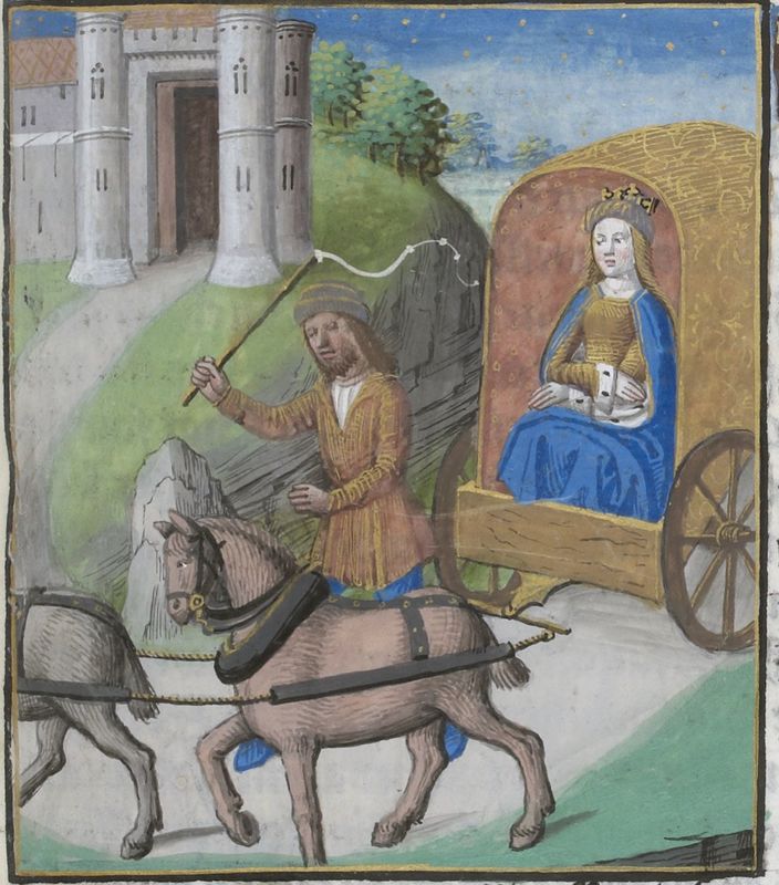 Parigi, Bibliothèque Nationale de France, Vélins 1223, f. p6r. Incunabolo miniato stampato a Parigi da Antoine Vérard il 26/04/1493. Agrippina, madre di Nerone, viene condotta in e…