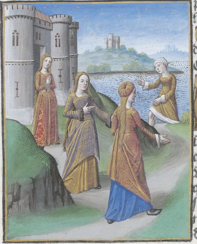 Parigi, Bibliothèque Nationale de France, Vélins 1223, f. i8v. Incunabolo miniato stampato a Parigi da Antoine Vérard il 26/04/1493. Veturia, accompagnata da due donne, parla con i…