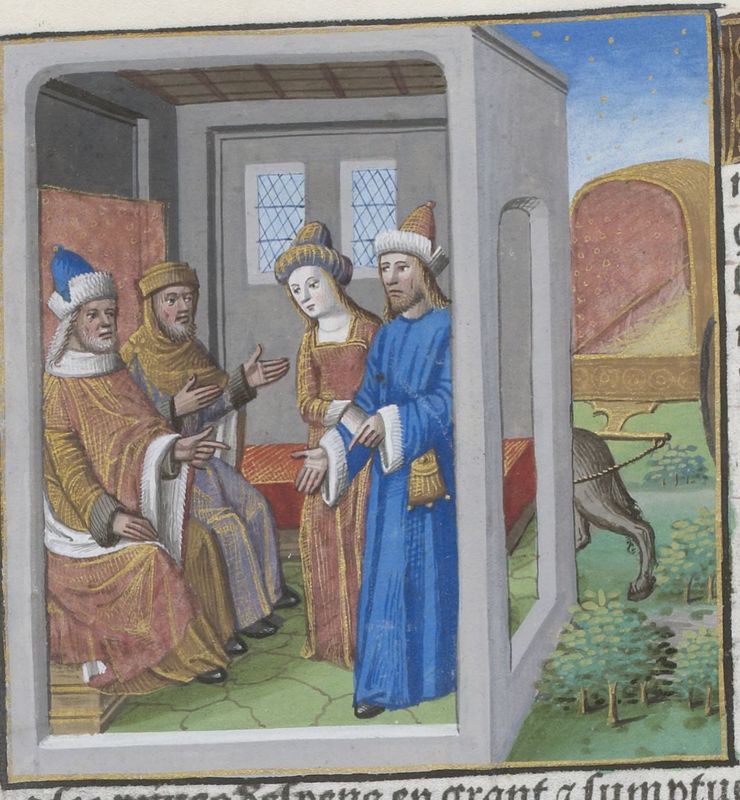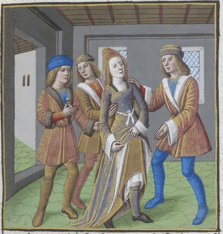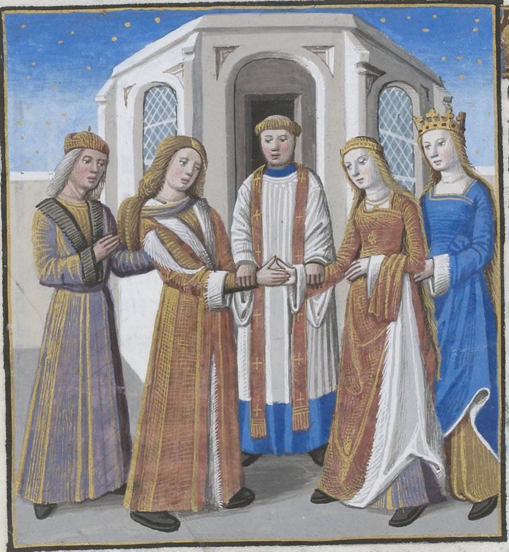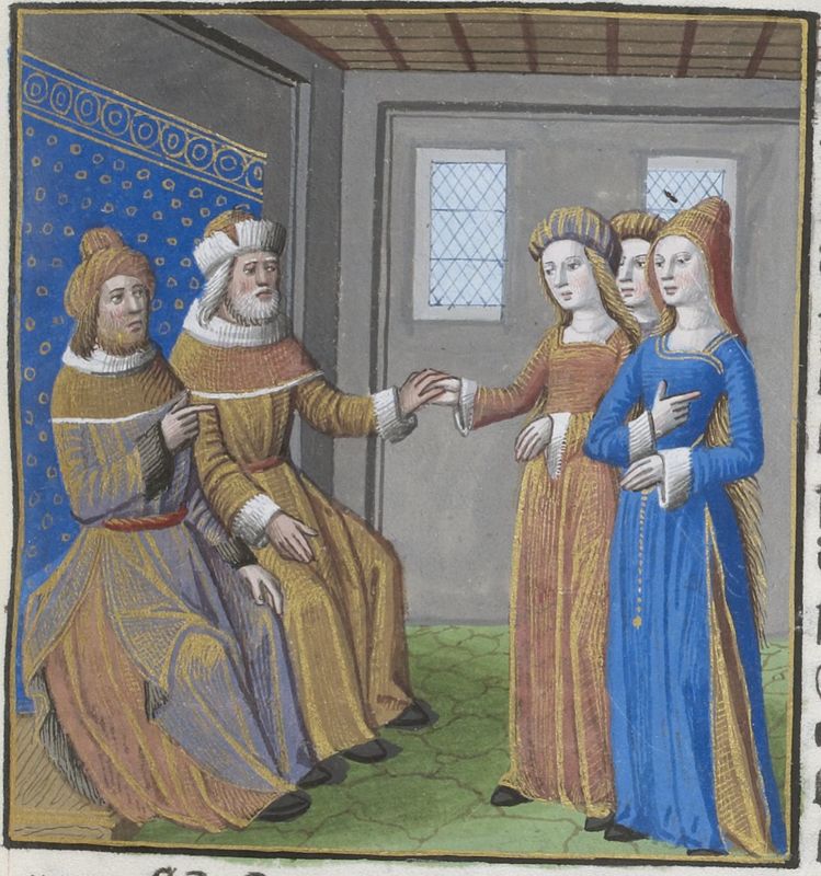 Maestro di Jacques de Besançon (1493), Megulia Dotata riceve la dote per il matrimonio