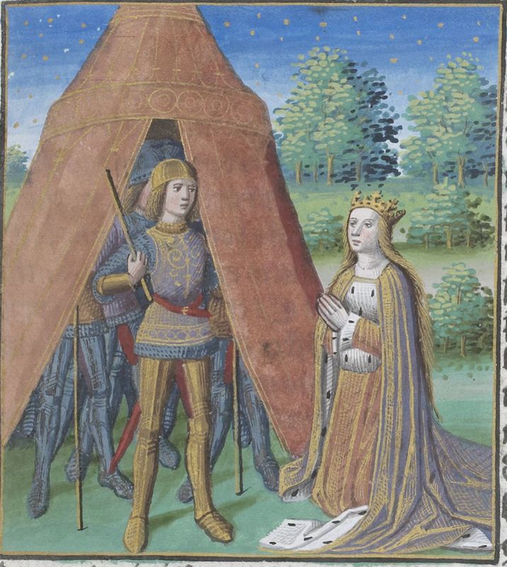 Parigi, Bibliothèque Nationale de France, Vélins 1223, f. l3r. Incunabolo miniato stampato a Parigi da Antoine Vérard il 26/04/1493. La regina Olimpiade viene fatta prigioniera.