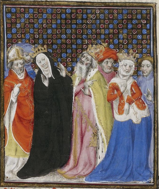 Maestro delle Clères Femmes e collaboratore (1403 c.), La regina Giovanna I riceve l'omaggio dei suoi sudditi