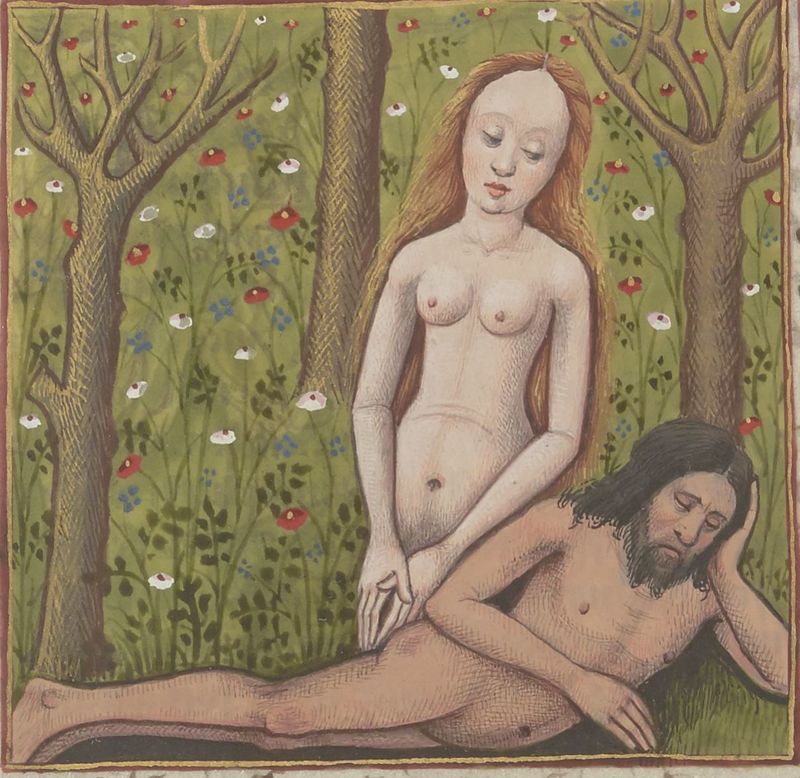 Parigi, Bibliothèque Nationale de France, Fr. 599, f. 4v. Eva nasce dalla costola di Adamo.