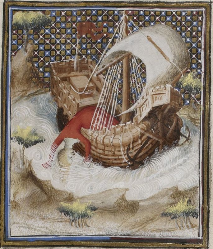 Parigi, Bibliothèque Nationale de France, Fr. 598, f. 82r. Ippona si getta in mare dalla nave.