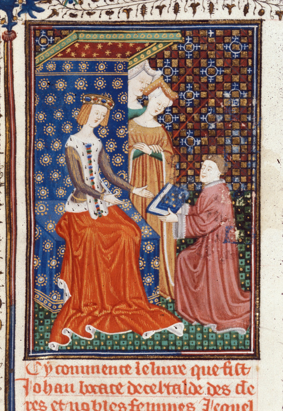 Maestro del Boezio (1405 c.), La regina Giovanna I riceve dei doni