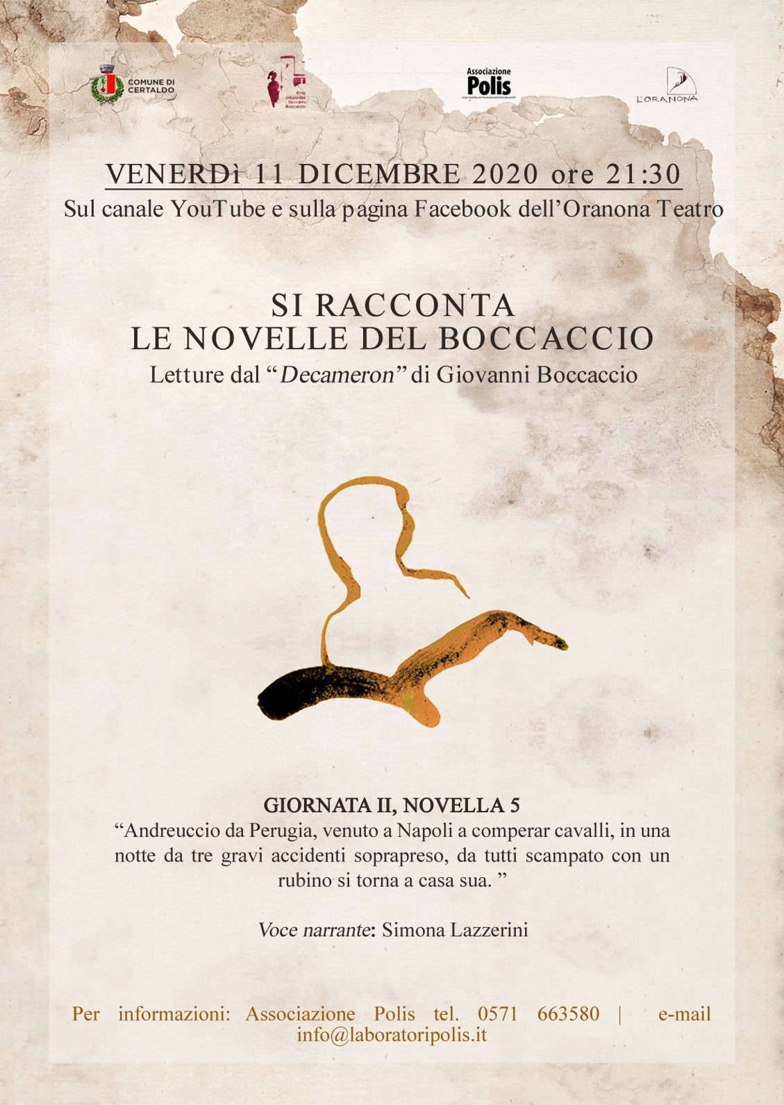 Da più di quindici anni l'Oranona Teatro-Ass. Polis dirige, in collaborazione con il Comune di Certaldo e l'Ente Nazionale Giovanni Boccaccio, la rassegna di letture filologiche dal Decameron in scena ogni secondo venerdì del mese in Casa del Boccaccio.
