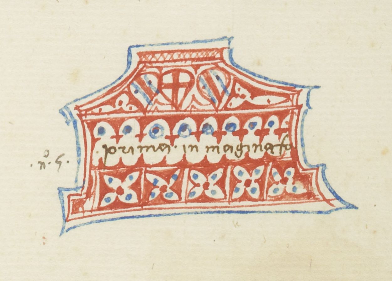 Parigi, Bibliothèque Nationale de France, It. 63, f. 228v. Il copista del manoscritto, datato 10 ottobre 1427, è Ludovico di Salvestro Ceffini. Un'arca decorata con tre scudi, in corrispondenza del richiamo "prima inmaginato".