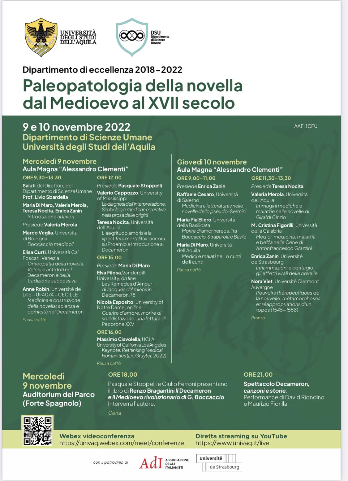 Dipartimento degli Studi Umanistici dell'Università dell'Aquila con il patrocinio di Associazione degli italianisti, Universitè de Strasbourg e Ente Nazionale Giovanni Boccaccio