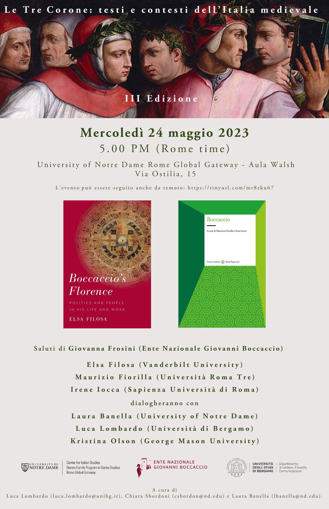 Presentazione dei volumi "Boccaccio's Florence" di Elsa Filosa (Toronto, 2022) e "Boccaccio", a cura di Maurizio Fiorilla e Irene Iocca (Roma, 2021)