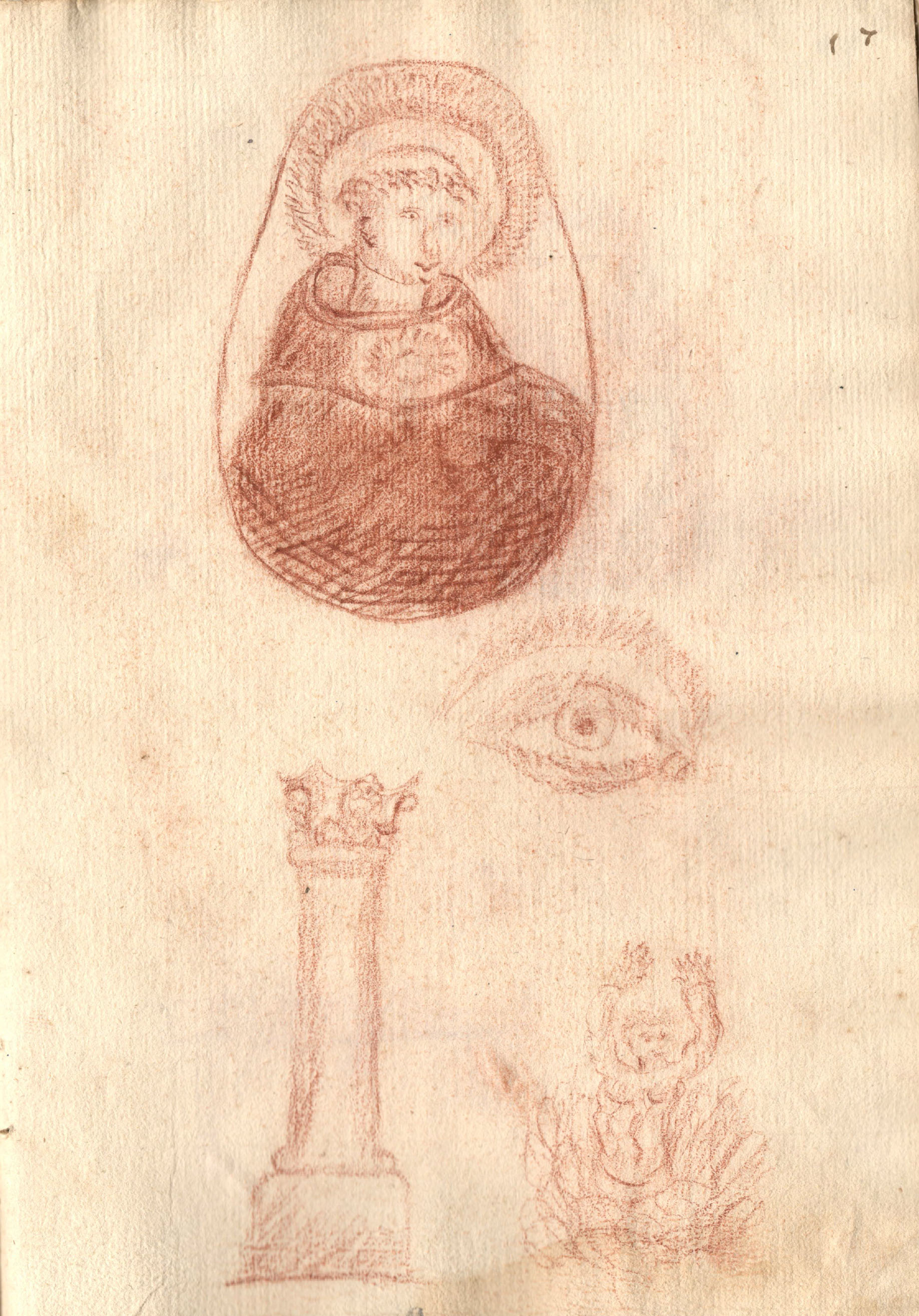 Ai ff. 8r-10v, 11v disegni con soggetti vari a matita rossa.
