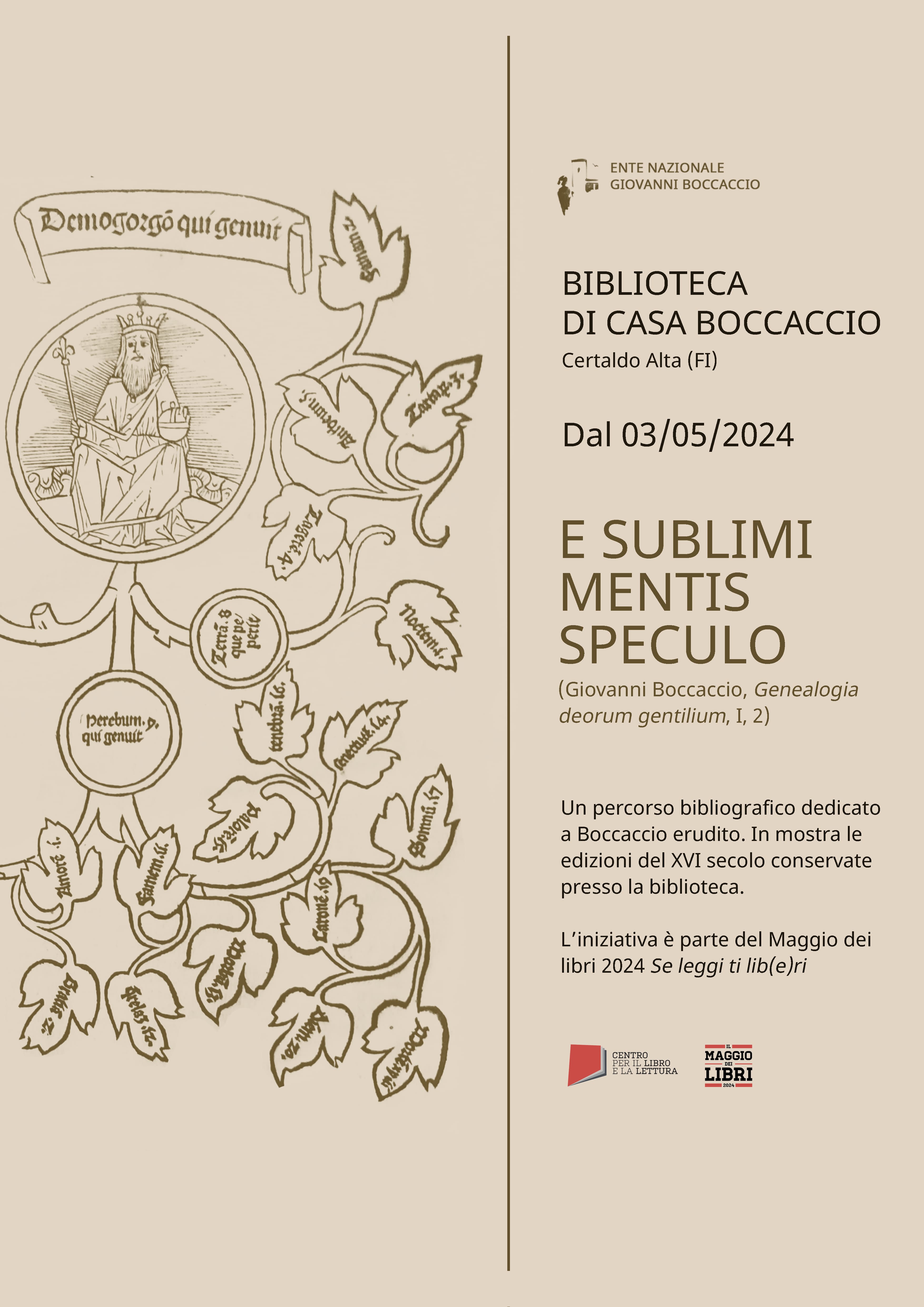 Nell’anno in cui per il “Maggio dei libri” è proposto il tema della libertà di pensiero a cui introduce la lettura, l’Ente Nazionale Giovanni Boccaccio propone una mostra in cui sono presentate alcune delle opere di Boccaccio certamente meno note, ma fondamentali proprio sotto l’aspetto del pensiero critico. La Genealogia deorum gentilium, il De mulieribus claris, il De casibus virorum illustrium, il De montibus sono opere latine che documentano il grande lavoro di Boccaccio per recuperare miti, storie, fatti di un’antichità che si apre al mondo greco ed ebraico, all’Oriente. Sono opere che concretamente danno l’avvio all’ala erudita dell’umanesimo, a quel movimento intellettuale che realizzerà il recupero della tradizione classica e sarà fondamento di un accesso critico ai testi e alla storia. Queste opere di Boccaccio godettero fra Quattro e Cinquecento di grande fortuna in tutta Europa (una fortuna superiore al Decameron) ed ebbero traduzioni nelle varie lingue nazionali, delle quali la mostra offre qualche esempio, fino all’età contemporanea.