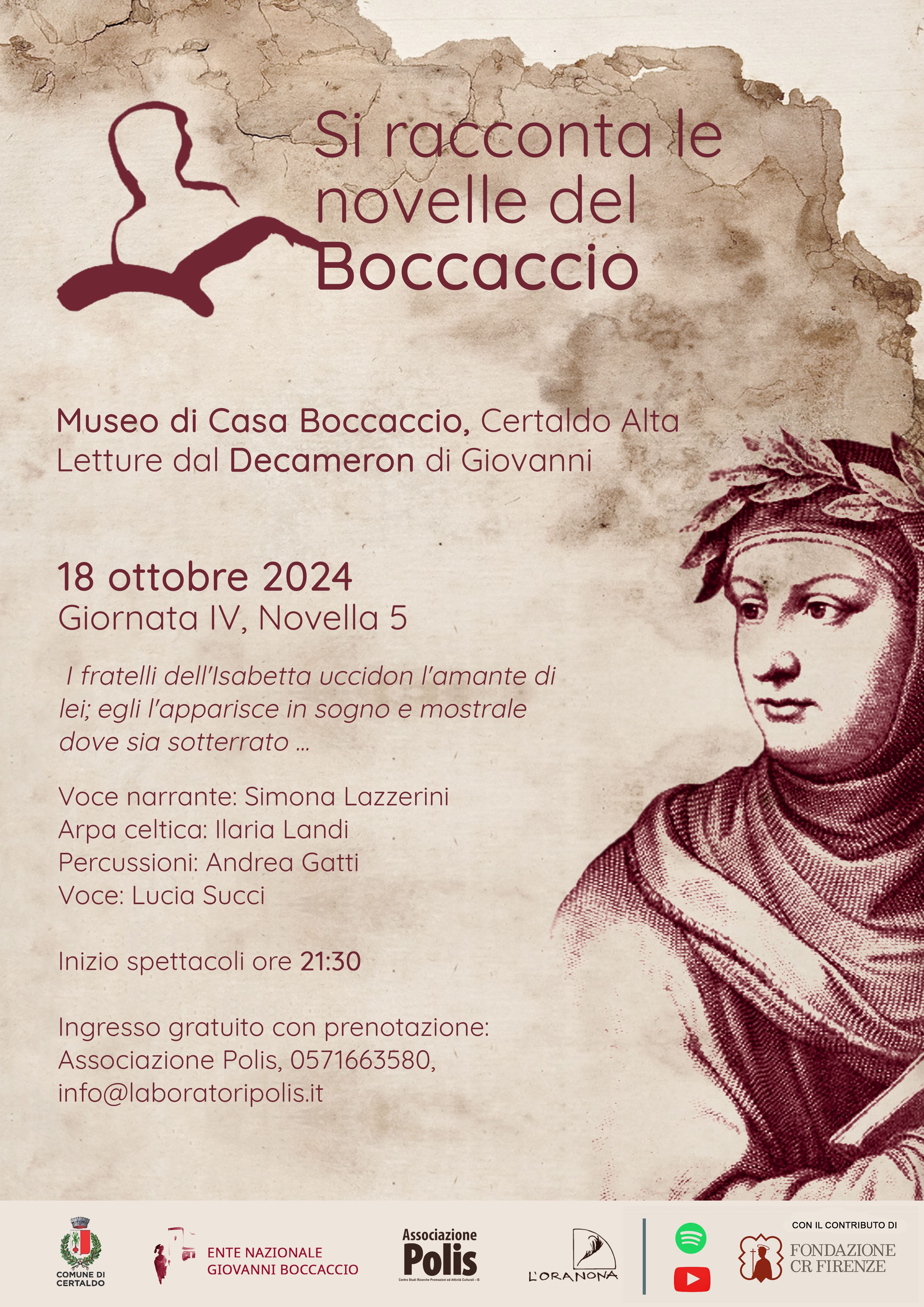 Rassegna annuale di letture del Decameron a cura della compagnia teatrale “L’Oranona Teatro”, con il contributo e la collaborazione dell'Ente Nazionale Giovanni Boccaccio, in scena ogni secondo venerdì del mese in Casa Boccaccio.