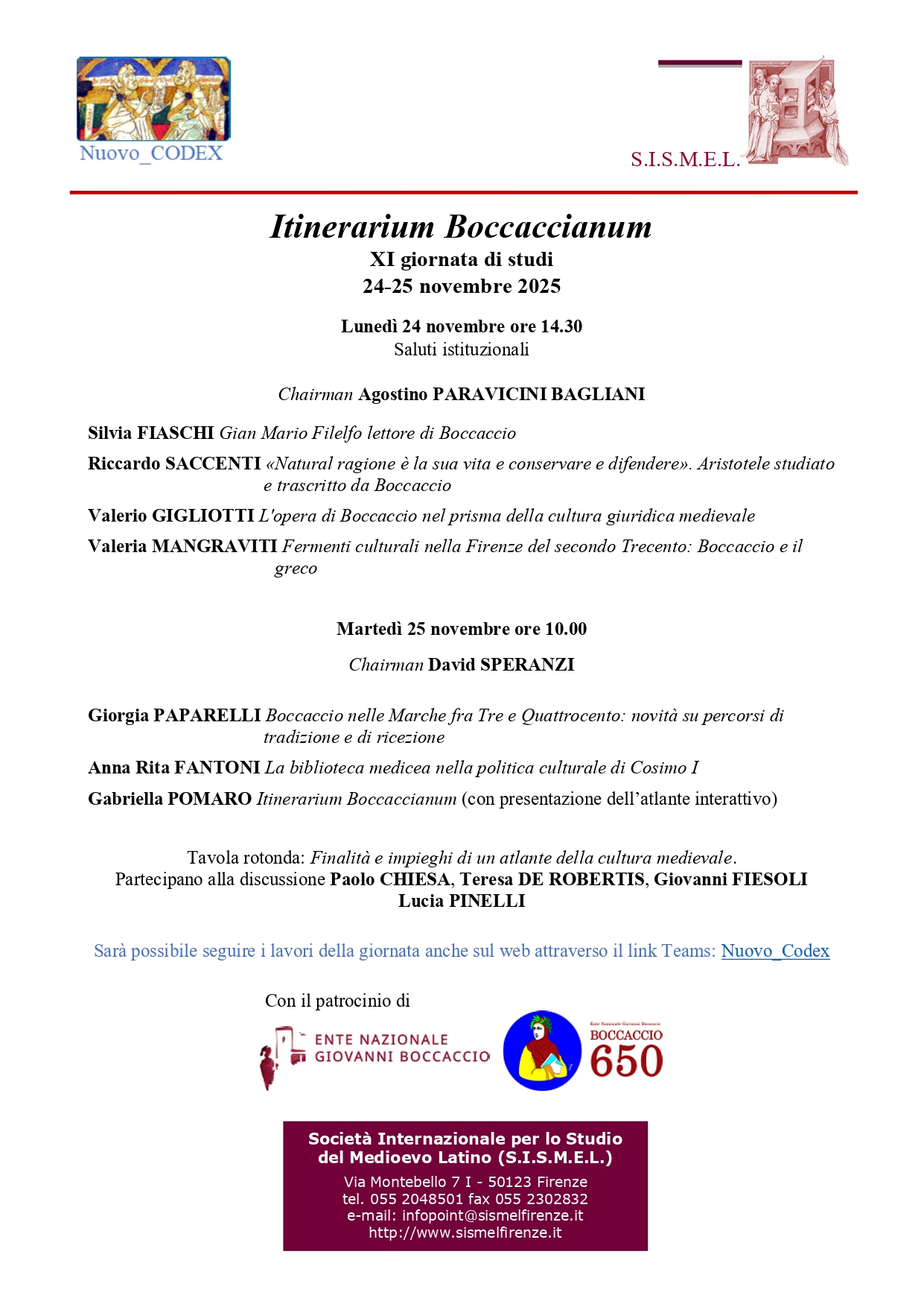 Società Internazionale per lo Studio del Medioevo Latino (S.I.S.M.E.L.), Via Montebello 7 I - 50123 Firenze