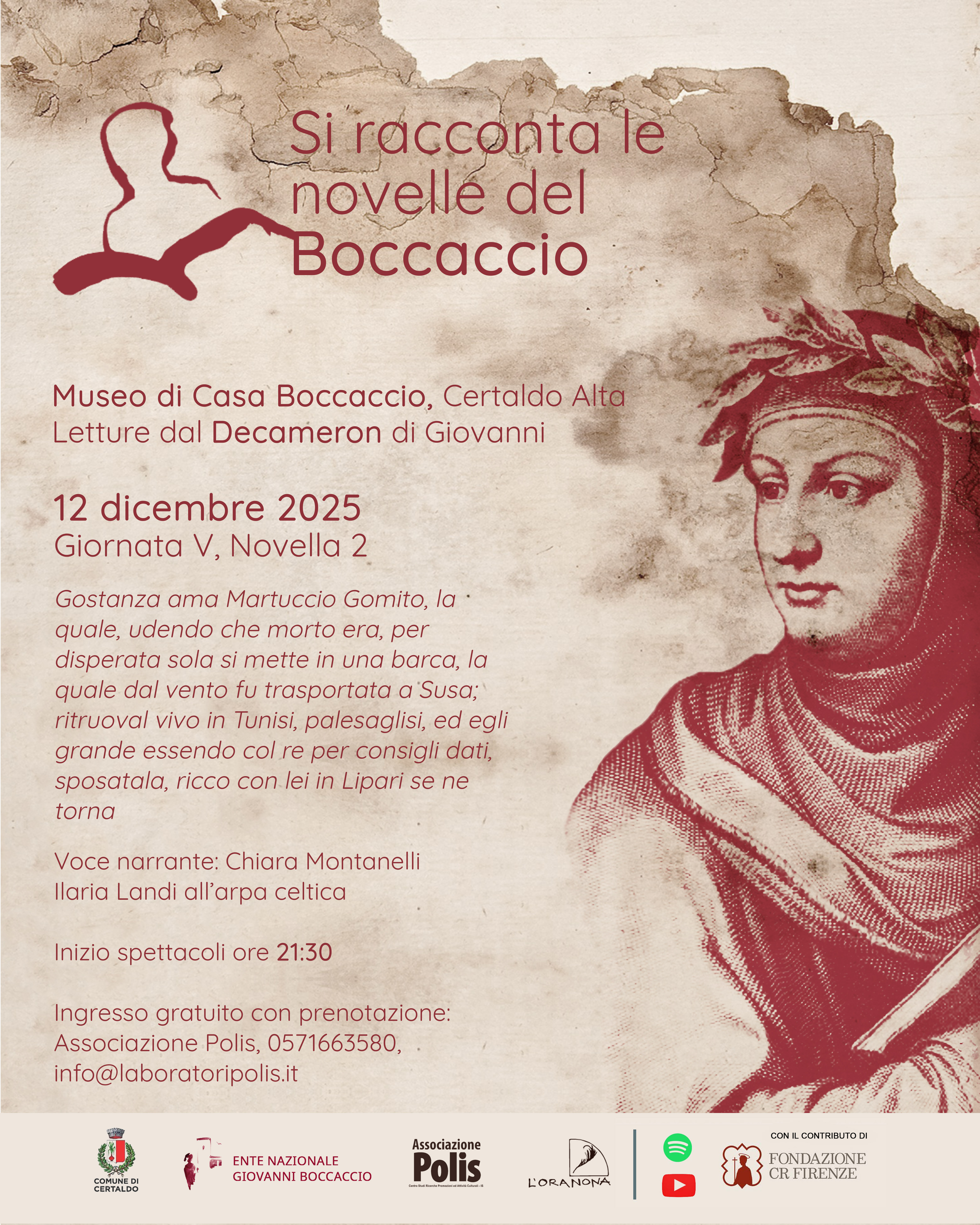 Rassegna annuale di letture del Decameron a cura della compagnia teatrale “L’Oranona Teatro”, con il contributo e la collaborazione dell'Ente Nazionale Giovanni Boccaccio, in scena ogni secondo venerdì del mese in Casa Boccaccio.