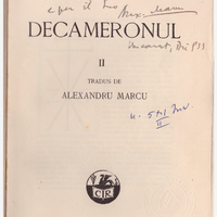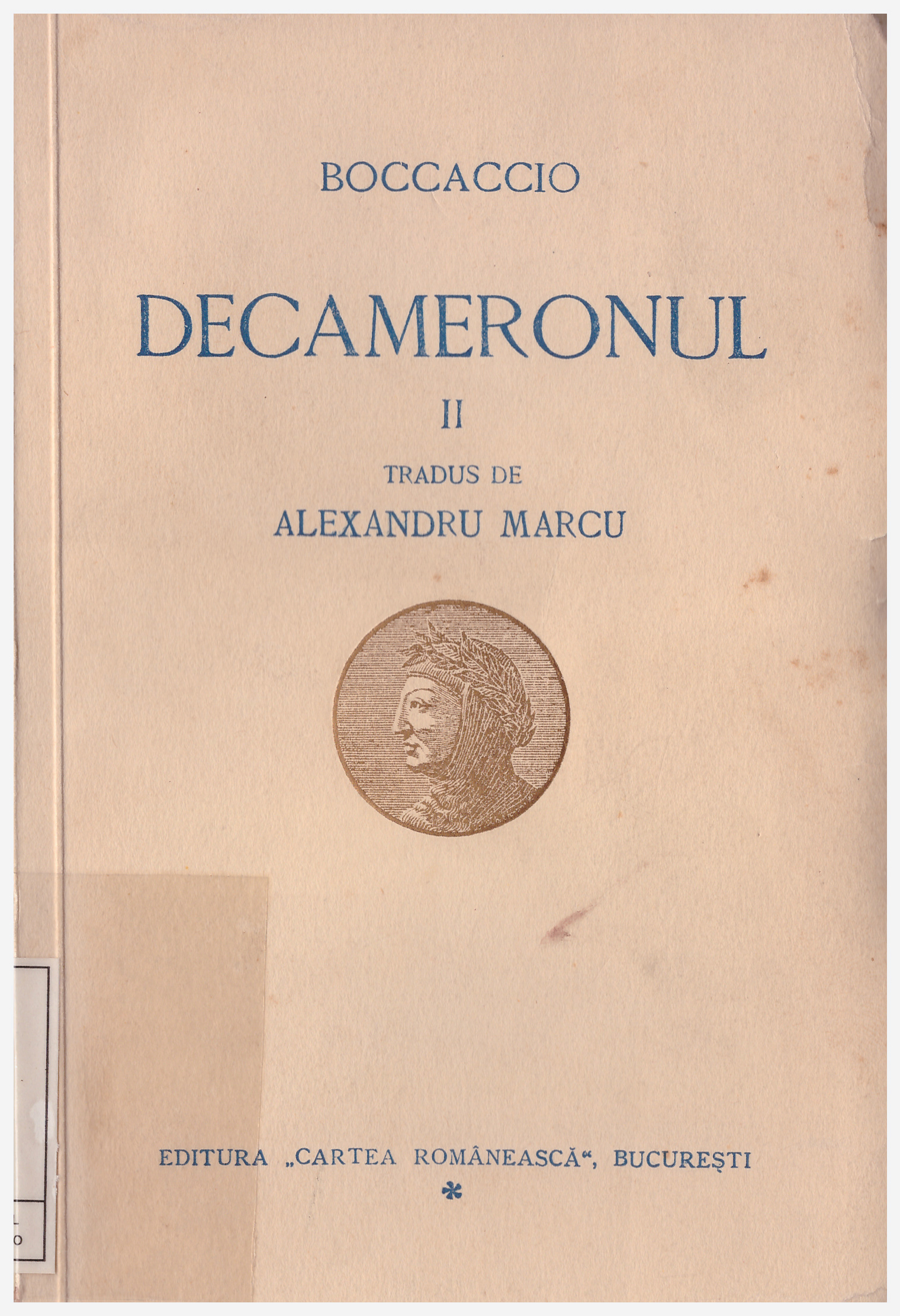 [22]ill. b/n all'inizio delle novelle. Coperta in cartoncino, con finissima xilografia con ritratto di Boccaccio; ogni novella è introdotta da un'illustrazione tratta dal Decameron di De Gregori (Venezia, 1492)