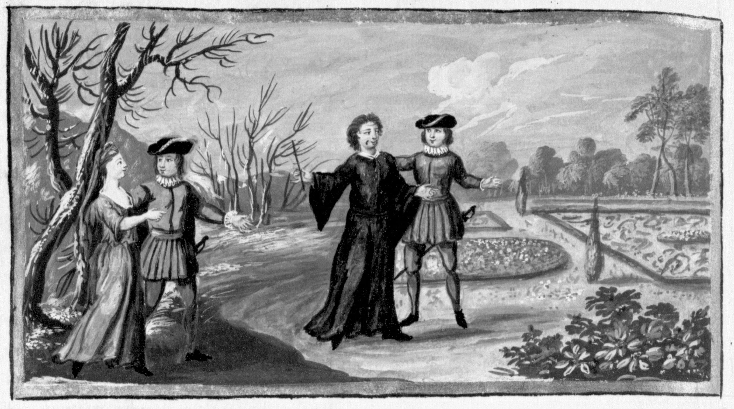Miniatore francese (XVII secolo), Un negromante fa fiorire il giardino d'inverno