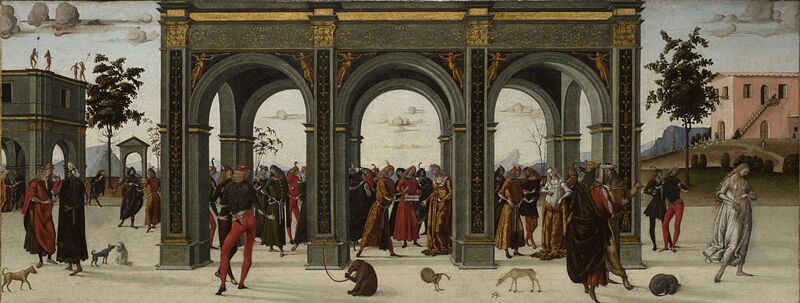 Maestro delle Storie di Griselda (1494 c.), Griselda consegna la figlia neonata al messo di Gualtieri; Gualtieri ripudia Griselda; Griselda è costretta a spogliarsi dei suoi abiti e a tornare alla casa del padre