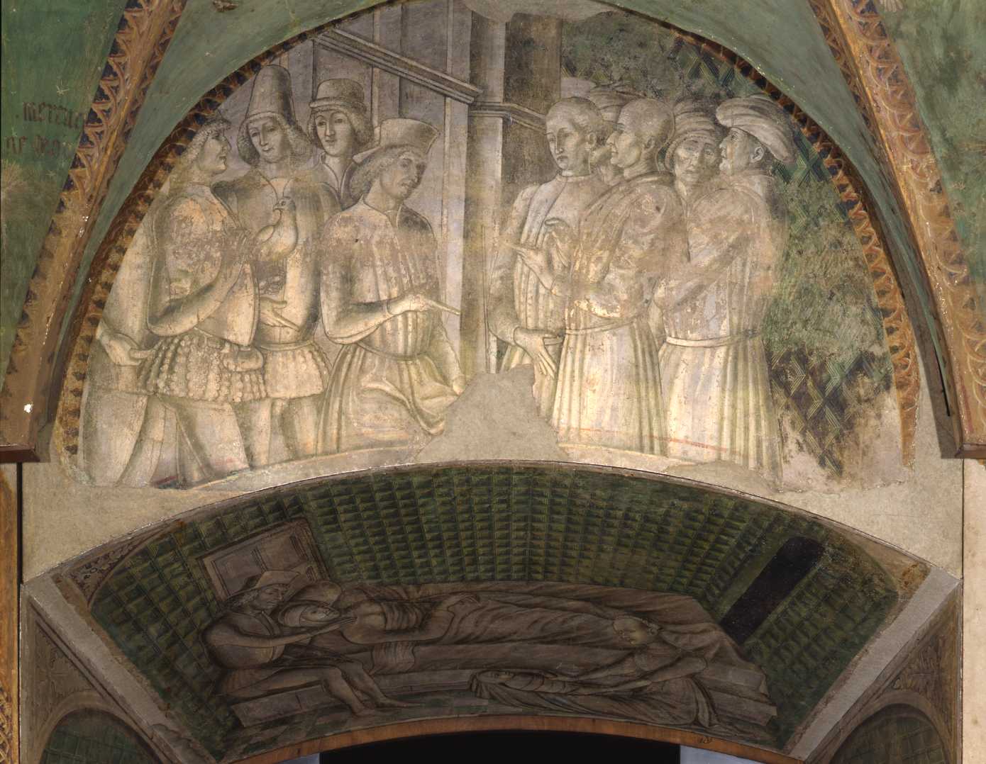 Milano, Pinacoteca del Castello Sforzesco, inv. n. 1347/01. Una delegazione di sudditi ottiene udienza dal marchese Gualtieri di Saluzzo e lo supplica di prendere moglie. Affresco strappato proveniente dalla Rocca dei Rossi a Roccabianca (PR).