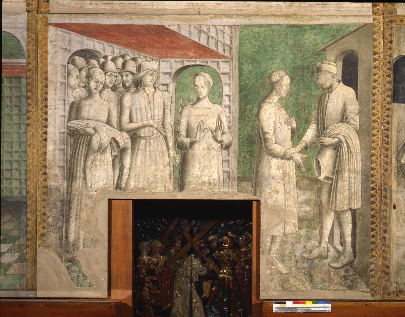 Milano, Pinacoteca del Castello Sforzesco, inv. n. 1347/18. Griselda viene spogliata delle sue vesti nobiliari e fatta allontanare da Gualtieri con indosso solo una camicia; Griselda ritorna dal padre Giannucole, il quale la attende sulla soglia con il suo vecchio abito. Affresco strappato proveniente dalla Rocca dei Rossi a Roccabianca (PR).