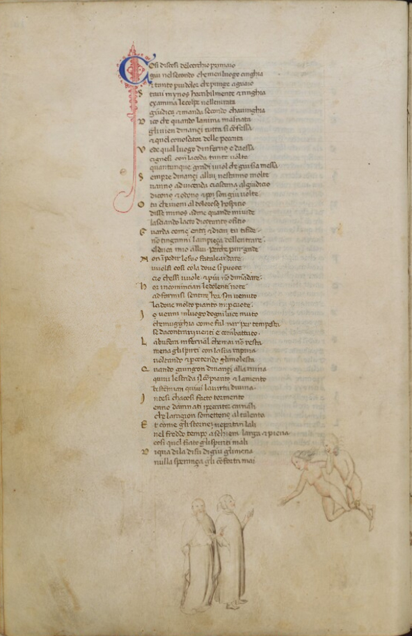 Membr. (aggiunte in epoca posteriore le cc. 71-86), cc. III + 187 + II’, mm. 294 × 193. Cadute due cc. tra le attuali 35 e 36 e un intero fascicolo tra le attuali 70 e 87. Dante, "Commedia" (con gli argomenti in terza rima del B.); carme "Finis adest longi Dantis cum laude laboris"; Dante, 15 canzoni. Risalente agli inizi degli anni ’60. Di mano del B. anche: notazioni in margine con lezioni alternative (ad es. c. 89r) e correzioni (ad es. c. 61v). Sette disegni a penna (cc. 4v, 7r, 10v, 15r, 17r, 20v, 29r) assegnati al B. da Degenhart-Schmitt e poi dalla Ciardi Dupré dal Poggetto, sono con ogni probabilità di mano piú tarda, come recentemente sostenuto dalla Battaglia Ricci. Frequenti note di commento di una mano posteriore (ad es. c. 109v), identificata da Casamassima con quella di Bartolomeo di ser Benedetto Fortini (possessore del codice nel XV secolo); questa tesi è stata smentita dalla Pomaro, che ha proposto di assegnare questi interventi a un copista collaboratore di Tedaldo della Casa, e da Giuseppina Brunetti, che ha ipotizzato siano di una mano trecentesca da ricondurre agli ambienti di Benvenuto da Imola.