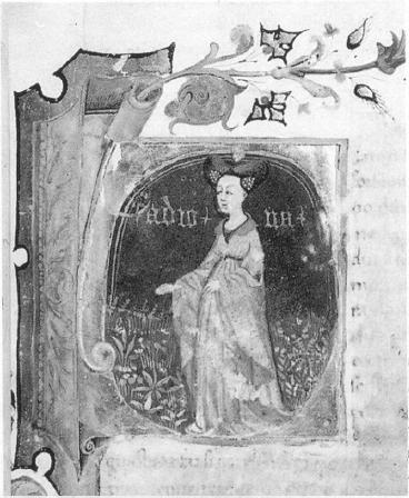 Londra, British Library, Add. 10299, f. 50r. Il copista del manoscritto è stato identificato con Michele Salvatico. La ninfa Adiona, all'interno dell'iniziale figurata E (non).