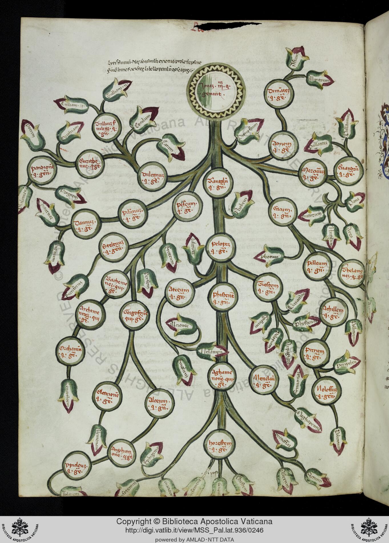Città del Vaticano, BAV, Pal. lat. 936, f. 120v. Albero genealogico di Giove terzo.