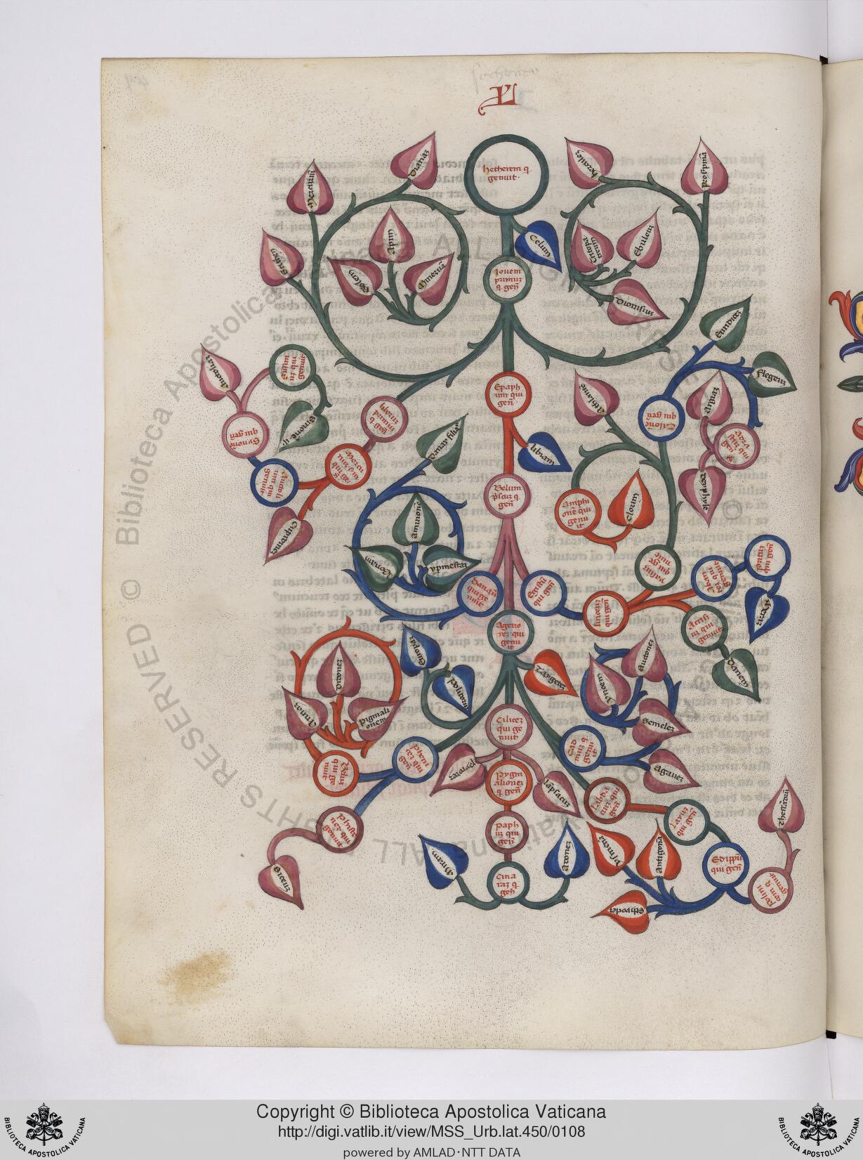 Città del Vaticano, BAV, Urb. lat. 450, f. 49v. Albero genealogico di Etere.