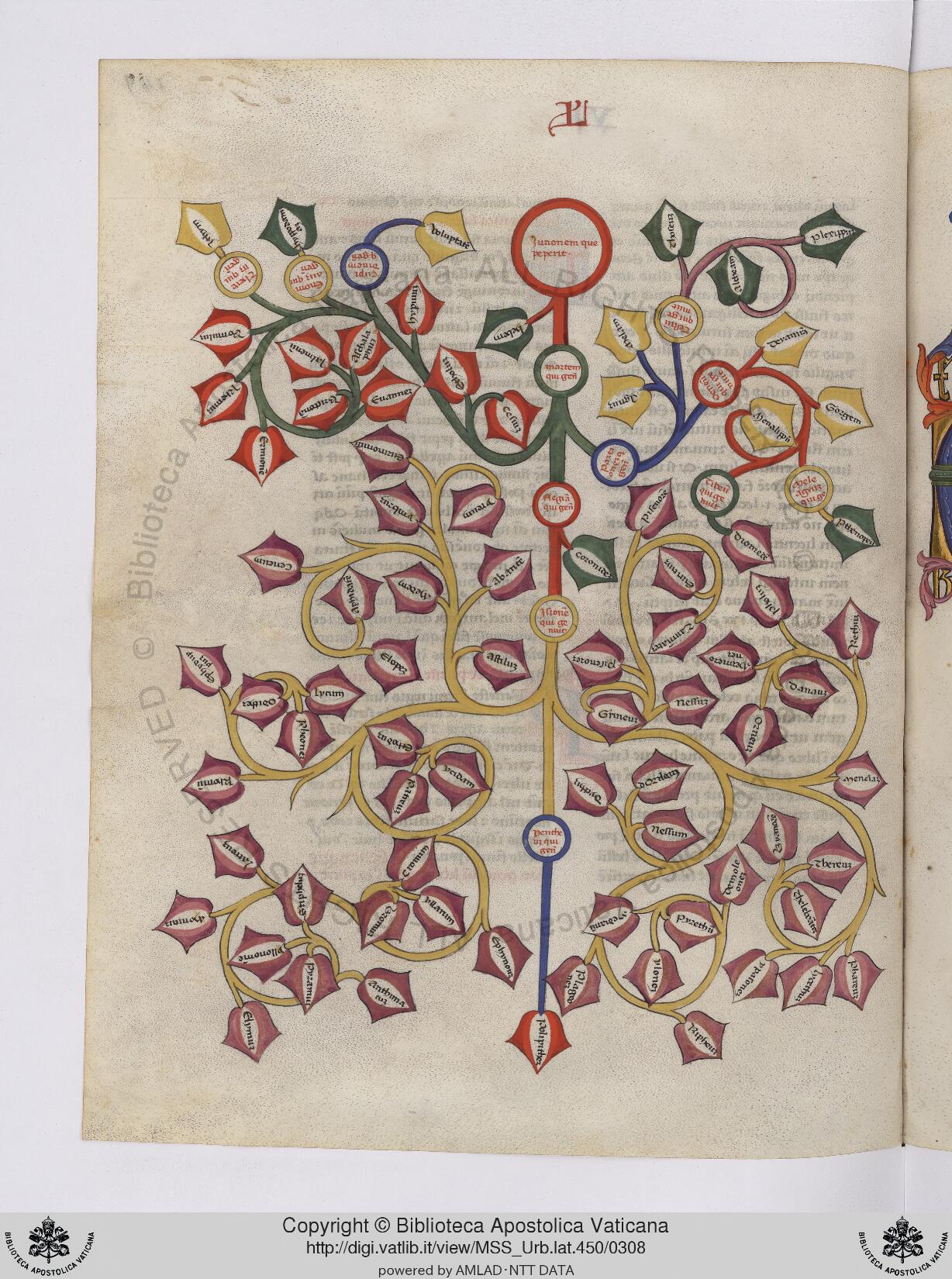 Città del Vaticano, BAV, Urb. lat. 450, f. 149v. Albero genealogico di Giunone.