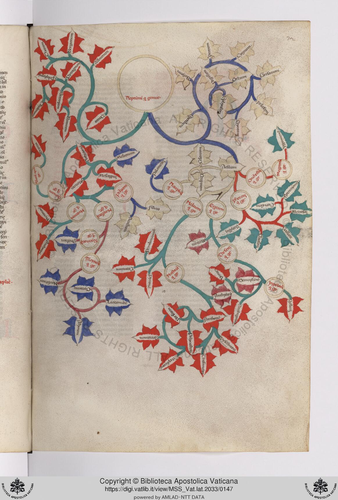 Città del Vaticano, BAV, Vat. lat. 2033, f. 72r. Albero genealogico di Nettuno.