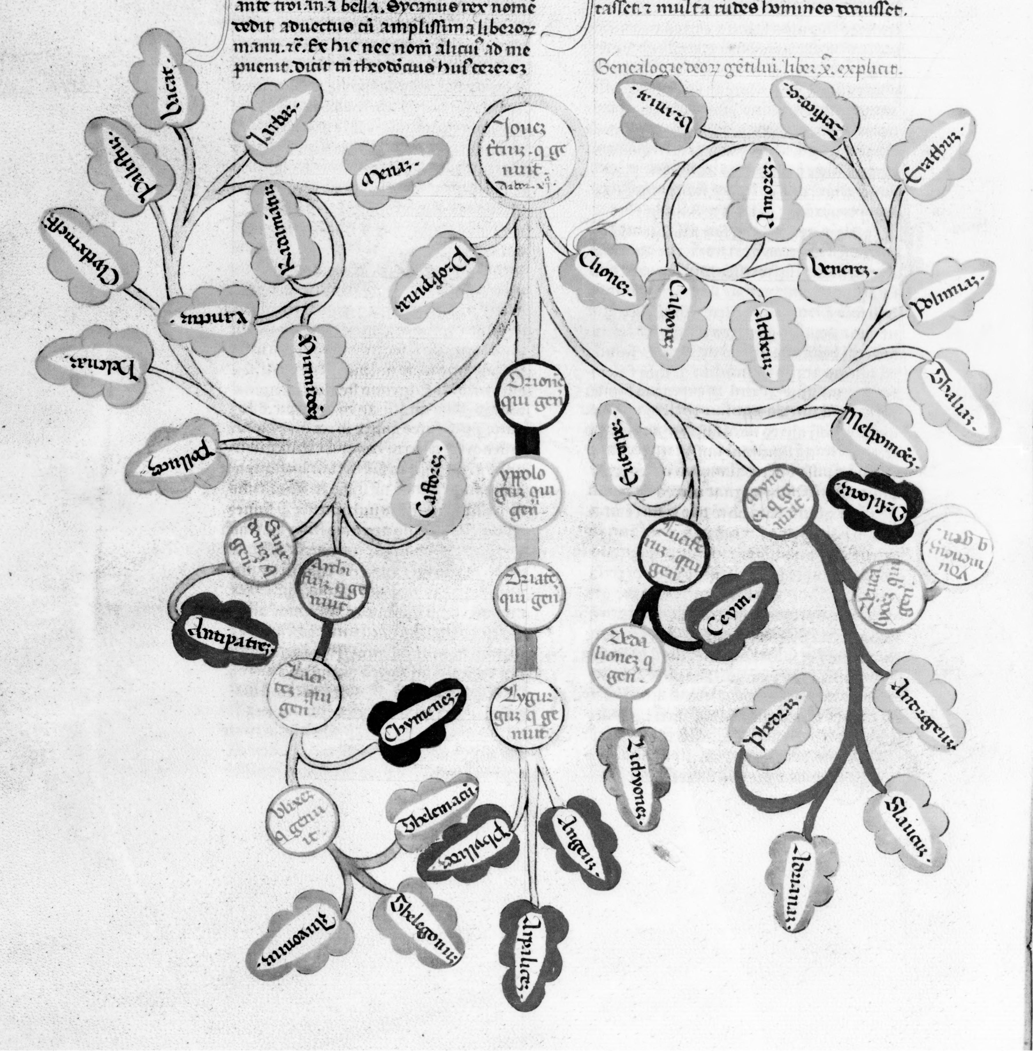 Parigi, Bibliothèque Nationale de France, Lat. 7877, f. 112v. Albero genealogico di Giove.