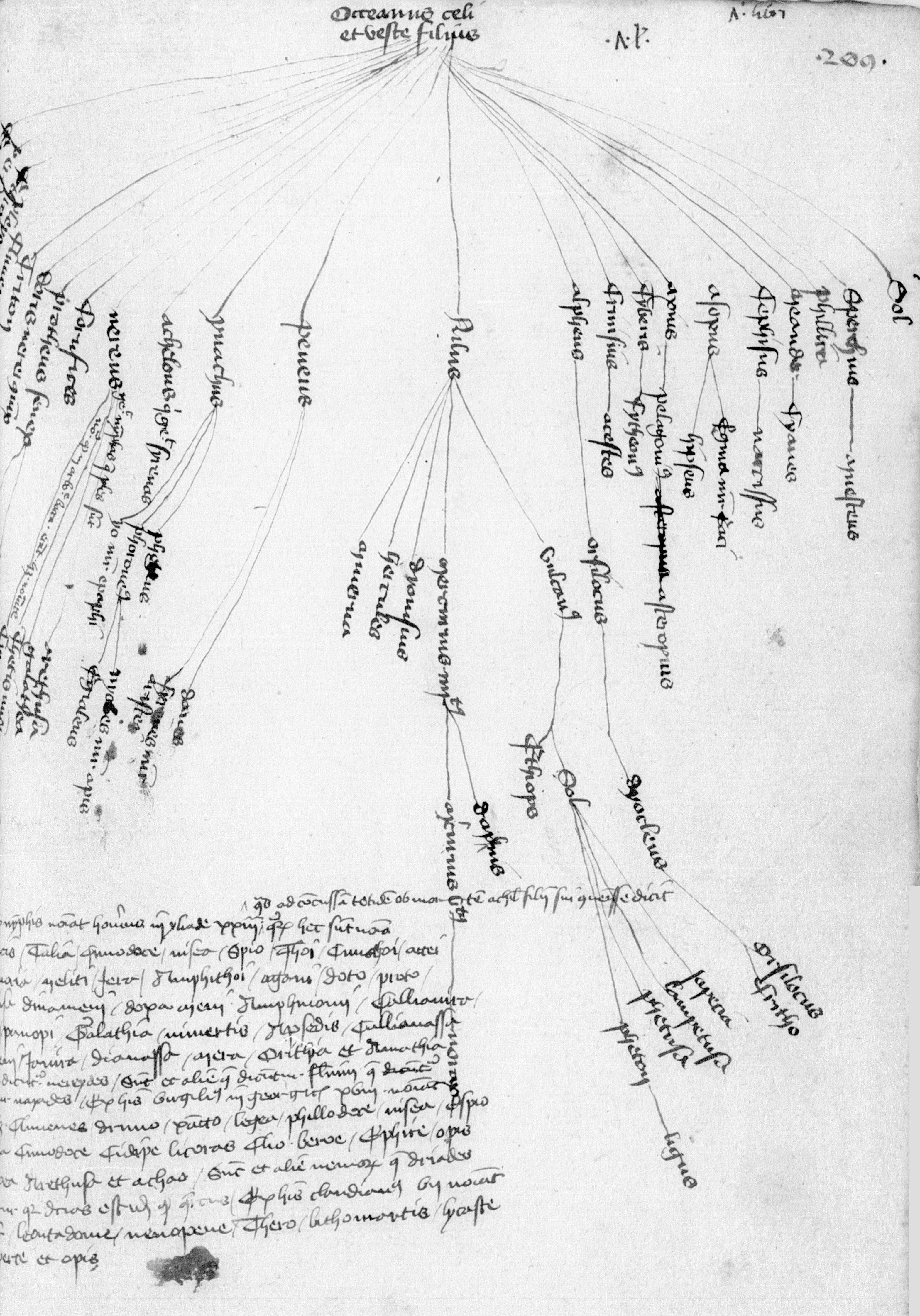 Parigi, Bibliothèque Nationale de France, Lat. 14716, f. 208v. Il copista del manoscritto è Gérard Martel. Albero genealogico di Dardano.