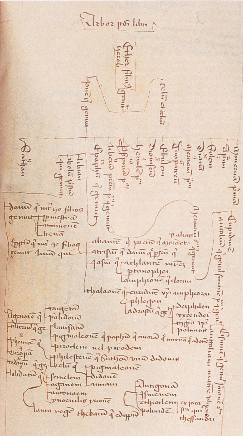 Oxford, Merton College, 299, f. 282r. Albero genealogico di Demogorgone.